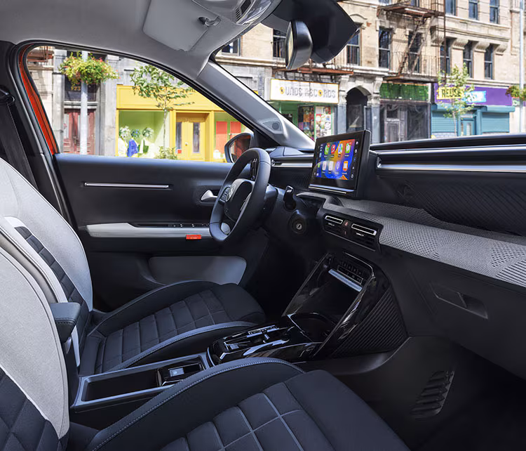 Im Cockpit geht Citroën einen radikal neuen Weg. Statt eines klassischen Tachos gibt es das „C-Zen Lounge“-Konzept: ein schmales Displayband direkt unter der Windschutzscheibe. In der Basisversion „You“ für 23.300 Euro gibt es statt eines Infotainment-Bildschirms lediglich eine Smartphone-Halterung. Erst in der teureren „Max“-Version ist ein 10,25-Zoll-Touchscreen verbaut. Dieser Ansatz ist ehrlich, denn er gibt preisbewussten Käufern die Wahl. Beim Platzangebot kann der ë-C3 dank seiner Höhe punkten und bietet mehr Kopf- und Beinfreiheit im Fond als ein Renault 5.