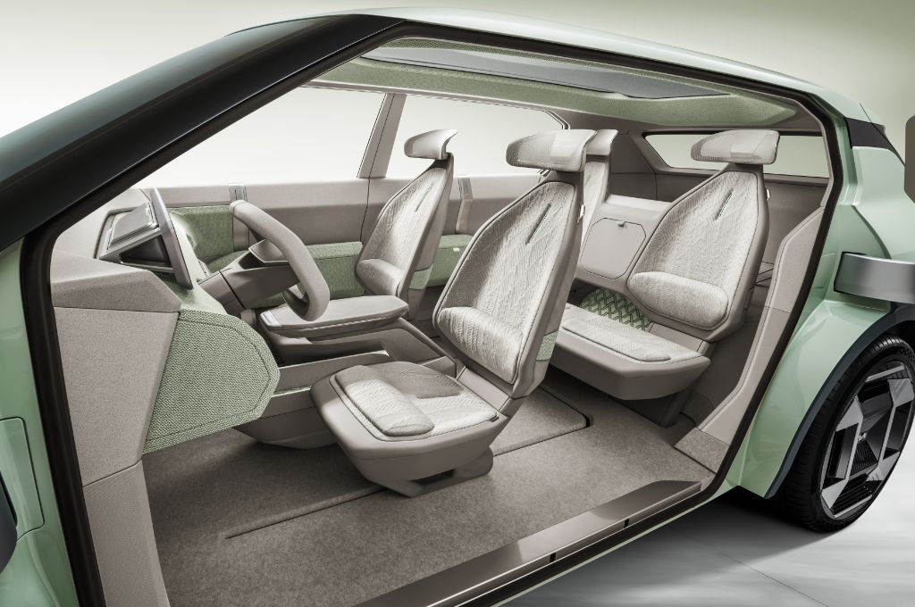 Eine zentrale Innovation ist der verschiebbare Tisch in der Mittelkonsole. Er kann nach vorne geschoben werden und schafft so eine bequeme Ablagefläche für einen Laptop oder eine Mahlzeit während des Parkens oder Ladens. Die Sitze verfügen über einen „Entspannungsmodus“, und für die Verkleidung werden weitgehend recycelte Materialien verwendet, darunter Stoff aus PET-Flaschen.